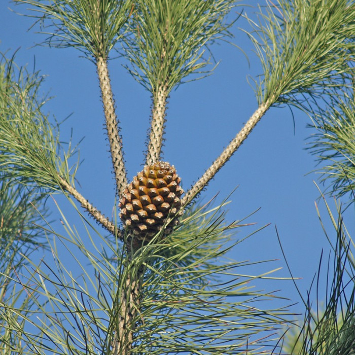 Italian stone pine, also known as the Mediterranean stone pine / Pinus pinea - a tree from the pine family, naturally found along the Mediterranean coast from the Iberian Peninsula to Asia Minor. It grows to a height of 20–30 meters and can live up to 500 years. Its crown is dense, dark green, umbrella-shaped, and compact, with older trees having horizontally spread branches. The needles are in pairs, long (10–15 cm), narrow, dense, green year-round, sometimes with a bluish tint.