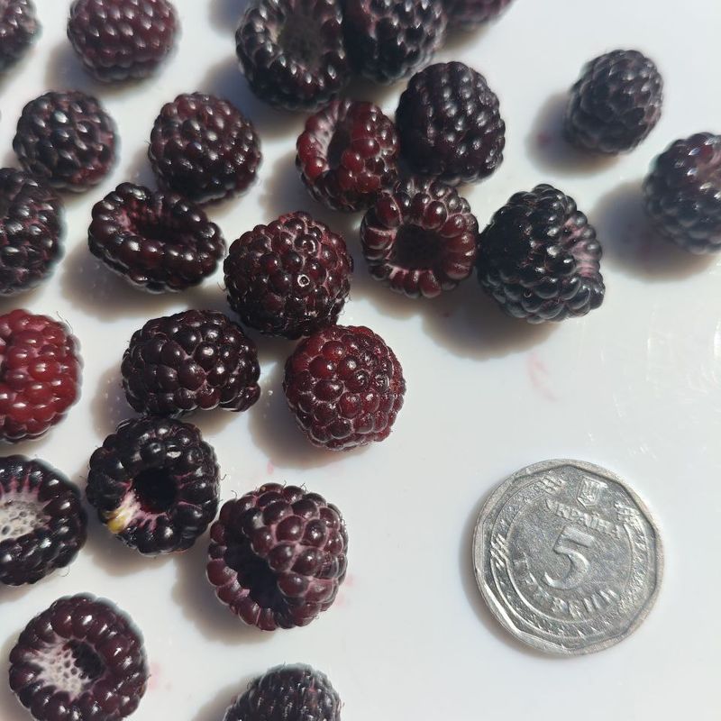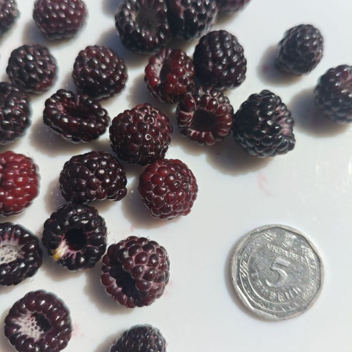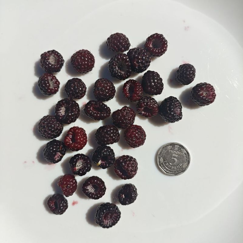 Black Raspberry «Bristol» (Remontant) - a high-yielding raspberry variety notable for its unique dark purple, almost black berries and remontant properties — the ability to bear fruit multiple times during the growing season. The berries have a sweet flavor with a slight tang and are rich in antioxidants, making them not only delicious but also a healthy treat.