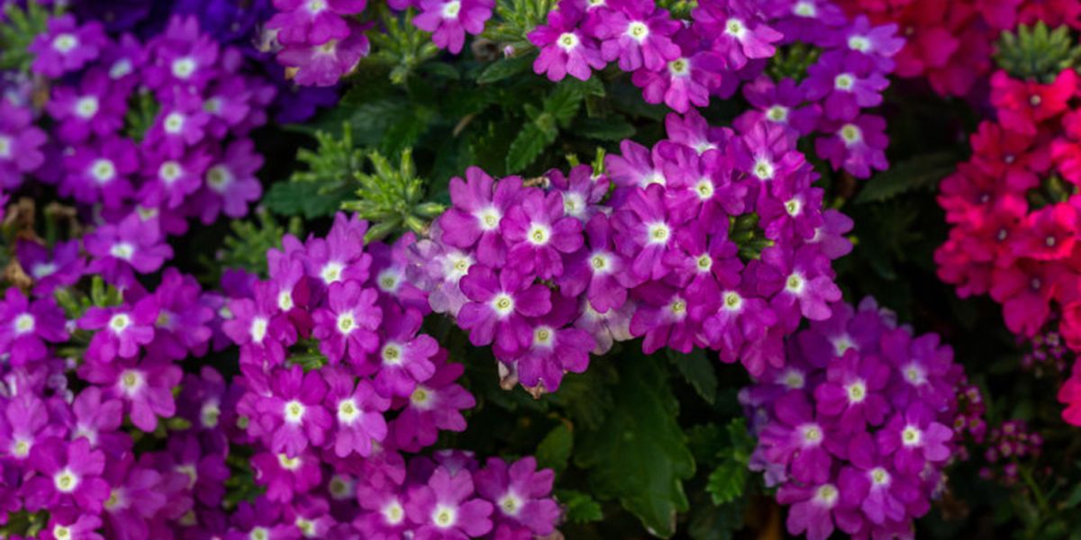 The dark green leaves of verbena vary in shape, and its main decoration is the inflorescences. Paniculate or corymbose, they combine up to 30–50 small flowers of various shades. Plants of different varieties bloom with white, yellow, pink, cream, red, salmon, rich blue, purple, and blue flowers, and there are also hybrids with expressive bicolor coloring. The flowering period of verbena lasts from June to November.
