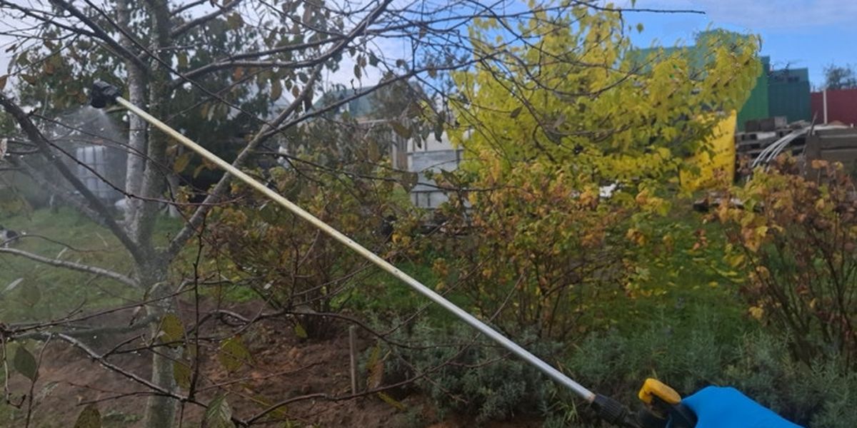Cleaning trees is better to carry out in wet weather. To do this, spread a film or agrotextile under the tree so that insect egg clutches and pieces of bark with fungal spores do not fall into the near-trunk circle. Detached bark, lichens can be removed with a wooden scraper, stiff brush or not too sharp spatula. If the tree has wounds, clean them to healthy wood. All plant debris that fell on the bedding should be carefully collected, taken out of the garden and burned. Also remove pruned branches and fallen leaves from under the trees.