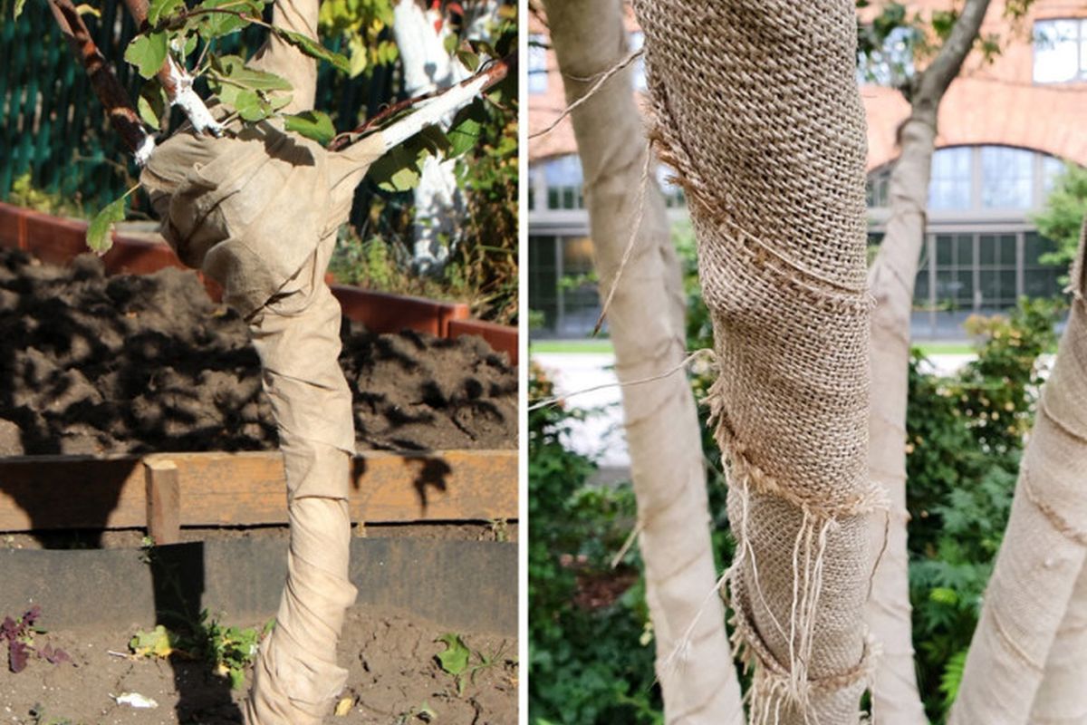 In addition, to protect the trunk and branches of the tree, you can use burlap, mesh with small cells, old sheets, nylon stockings or any light-colored fabric that passes air and dries quickly after getting wet. But at the same time it is worth remembering that the denser the material, the longer it will dry.
