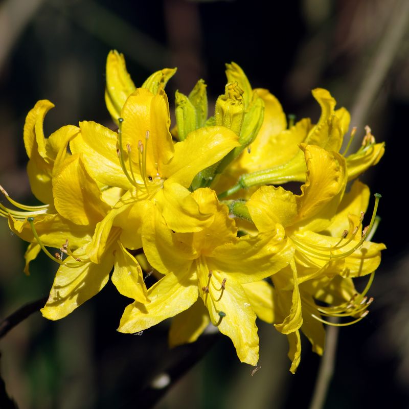 Рододендрон желтый, или Азалия желтая, или Азалия понтийская / Rhododendron luteum, Rhododendron flavum, Rhododendron polessicum, Azalea pontica - реликтовый листопадный вид рододендрона. Растет в подлеске хвойных и смешанных лесов, на лесных полянах. Распространен на Полесье, в частности, в Ровенской и Житомирской областях, на Кавказе, в горных районах Турции, в Польше. Рододендрон желтый занесен в Красную Книгу Украины.