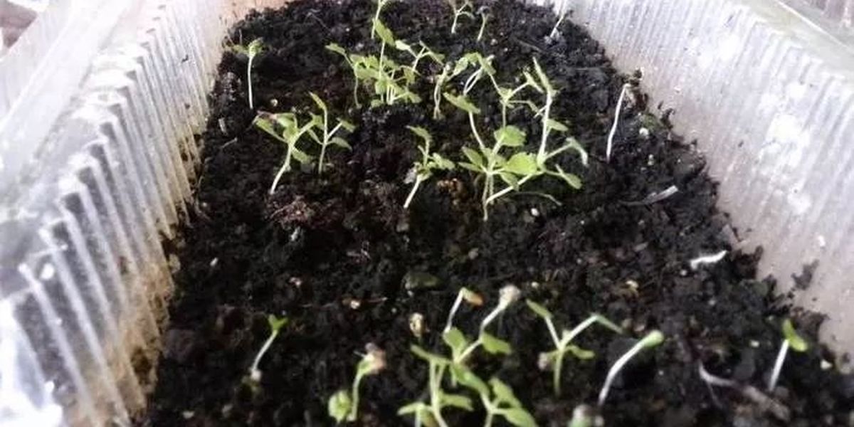 В начале из земли появляется стебель, закрытый оболочкой семени, после сброса которой заметны один или два семядольных листочка. Кустики, на которых появилось 2-4 настоящих листа, пересаживают в отдельный контейнер.