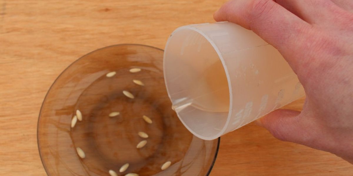 Сначала отберите полновесные семена, т.е. проведите калибровку. Для этого поместите их в солевой раствор (1 ст.л. соли на стакан воды), перемешайте и оставьте на 5-10 минут. Всплывшие семена лучше выбросить – они, скорее всего, не прорастут или дадут слабые растения. Осевшие на дно семена промойте чистой водой.