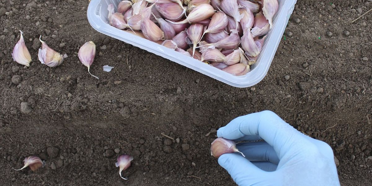 Глибина загортання залежить від розміру зубків. Для посадки великих зубків зробіть борозенку глибиною близько 9–10 см, щоб від верхівки зубка до поверхні ґрунту було приблизно 5–6 см. Невеликі зубки можна висаджувати на глибину 7–8 см.