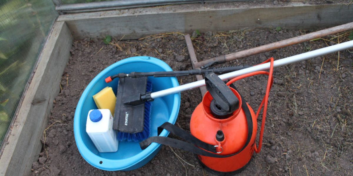 Якщо торік рослини в теплиці сильно хворіли, то для миття споруди краще застосовувати промислові дезінфікуючі препарати. Робочий розчин наносять на стінки й каркас теплиці та витримують 30–40 хвилин, після чого миють м’якою щіткою або губкою й споліскують водою зі шланга.